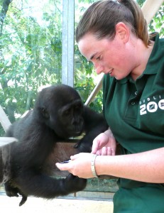 Das Gorillamädchen Claudia, das seit 2010 in der Wilhelma-Aufzuchtstation für verwaiste oder von ihren Mütter nicht angenommene Gorillakinder lebte, ist vergangenen Montag in den Zoo von Dublin umgezogen, um in die dortige Gorillafamilie integriert zu werden. Da Claudia seit Anfang 2011 im Stuttgarter Menschenaffenhaus nahe der Gorillafamilie untergebracht war, wo sie von dieser lernen konnte, ist sie auf den Schritt gut vorbereitet.